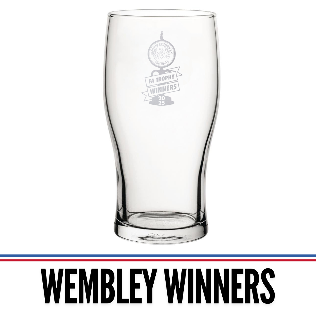 Pint Glass branded with the FA Trophy, and Aldershot Town Football Clubs badge!